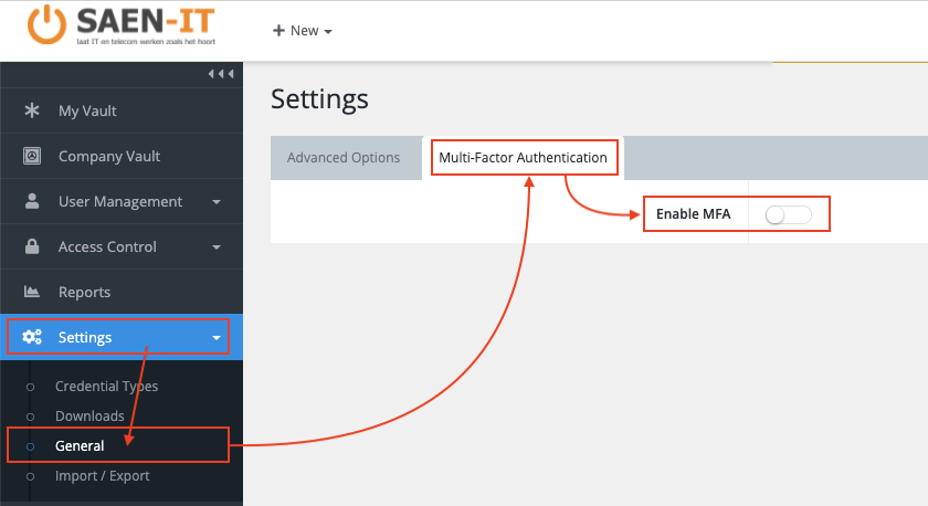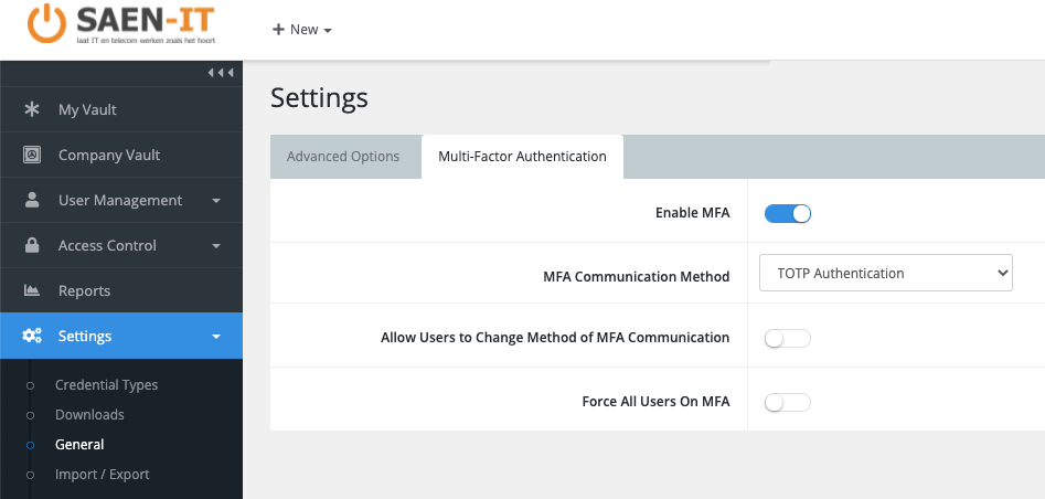5- Zet de schakelaar bij “Force All Users On MFA” aan