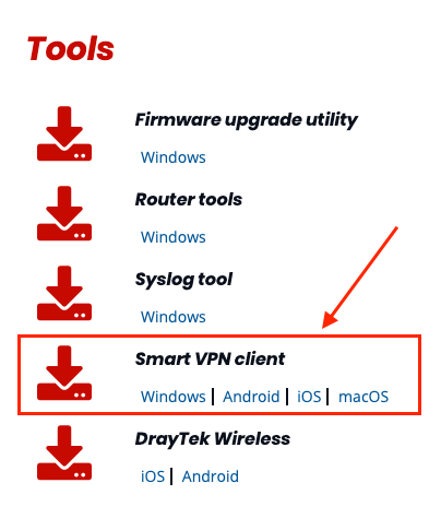 1- Download eerst de Smart VPN-cliënt voor het besturingssysteem op het onderstaand adres: